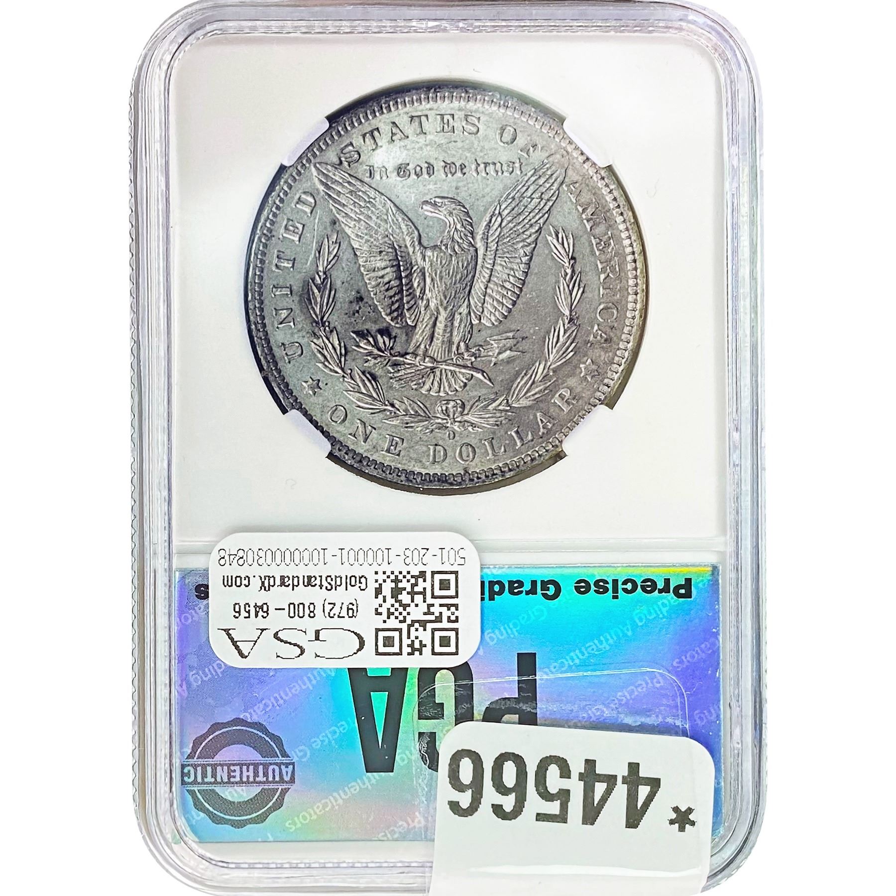 COINS AND CURRENCY LISTED IN GSA’S CATALOG AS GRADED AND ENCAPSULATED BY PCGS, NGC, ANACS, ICG, PCGS CURRENCY, PMG, PCGS BANKNOTE GRADING, CMC OR ANY OTHER THIRD-PARTY GRADING SERVICE ARE LIKEWISE SOLD “AS-IS” EXCEPT AS EXPRESSLY SET FORTH HEREIN. ALL THIRD-PARTY GRADING SERVICE GUARANTEES, INCLUDING AUTHENTICITY, ARE THE SOLE RESPONSIBILITY OF THE THIRD-PARTY GRADING SERVICE AND NOT WARRANTIES OR GUARANTEES OF GSA. BIDDERS SHOULD CONTACT THESE THIRD-PARTY GRADING SERVICES DIRECTLY WITH RESPECT TO ANY CLAIMS OR QUESTIONS THEY MAY HAVE CONCERNING THEIR GUARANTEES AND WARRANTIES. BIDDERS ACKNOWLEDGE AND AGREE THAT AUCTIONEER IS NOT BOUND BY OR LIABLE FOR ANY OPINION OR CERTIFICATION BY ANY THIRD-PARTY GRADING SERVICE. REMOVAL OF A PRODUCT FROM ITS PROTECTIVE CASING OR HOLDER OR ALTERATION OF ANY COIN HOLDER WAIVES ALL RIGHTS CONCERNING THE PRODUCT CONTAINED THEREIN.