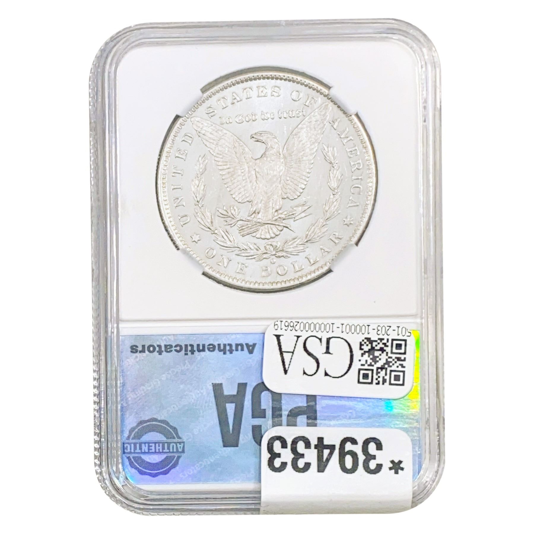 COINS AND CURRENCY LISTED IN GSA’S CATALOG AS GRADED AND ENCAPSULATED BY PCGS, NGC, ANACS, ICG, PCGS CURRENCY, PMG, PCGS BANKNOTE GRADING, CMC OR ANY OTHER THIRD-PARTY GRADING SERVICE ARE LIKEWISE SOLD “AS-IS” EXCEPT AS EXPRESSLY SET FORTH HEREIN. ALL THIRD-PARTY GRADING SERVICE GUARANTEES, INCLUDING AUTHENTICITY, ARE THE SOLE RESPONSIBILITY OF THE THIRD-PARTY GRADING SERVICE AND NOT WARRANTIES OR GUARANTEES OF GSA. BIDDERS SHOULD CONTACT THESE THIRD-PARTY GRADING SERVICES DIRECTLY WITH RESPECT TO ANY CLAIMS OR QUESTIONS THEY MAY HAVE CONCERNING THEIR GUARANTEES AND WARRANTIES. BIDDERS ACKNOWLEDGE AND AGREE THAT AUCTIONEER IS NOT BOUND BY OR LIABLE FOR ANY OPINION OR CERTIFICATION BY ANY THIRD-PARTY GRADING SERVICE. REMOVAL OF A PRODUCT FROM ITS PROTECTIVE CASING OR HOLDER OR ALTERATION OF ANY COIN HOLDER WAIVES ALL RIGHTS CONCERNING THE PRODUCT CONTAINED THEREIN.