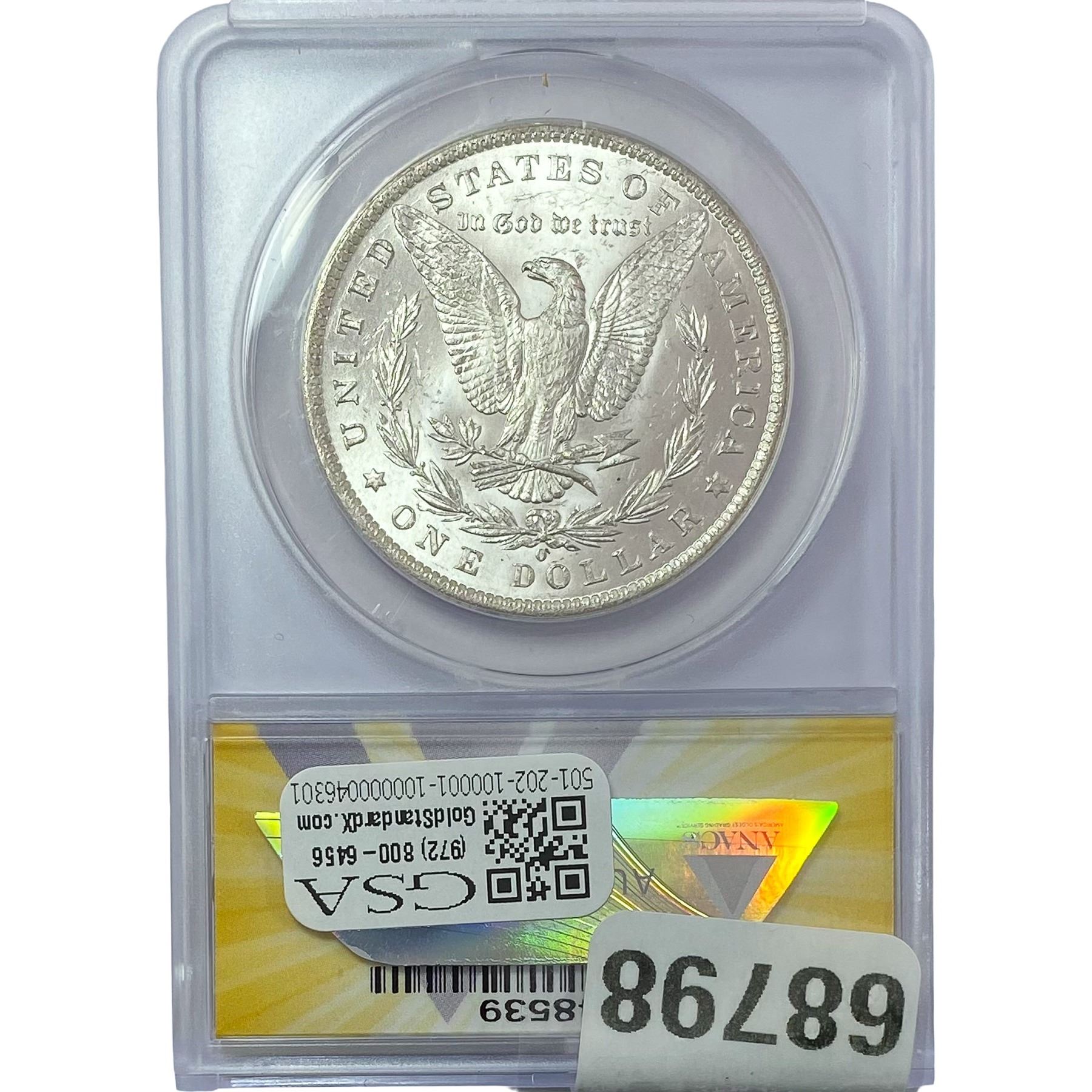 e. Coins sold referencing a third-party grading service are sold “AS IS” without any express or implied warranty, except for a guarantee by GSA that they are genuine. Removal or alteration of the holder, voids all of Bidder’s claims concerning that Product. Certain warranties may be available from the grading services and Bidders are referred to them for further details: Numismatic Guaranty Corporation (NGC), PO Box 4776, Sarasota, FL 34230, www.ngccoin.com/services/writtenguarantee.asp; Professional Coin Grading Services (PCGS), PO Box 9458, Newport Beach, CA 92658, www.pcgs.com/guarantee.html; ANACS, 6555 S. Kenton St., Ste. 303, Englewood, CO 80111; and Independent Coin Grading Co. (ICG), 7901 East Bellview, Ave., Suite 50, Englewood, CO 80111.