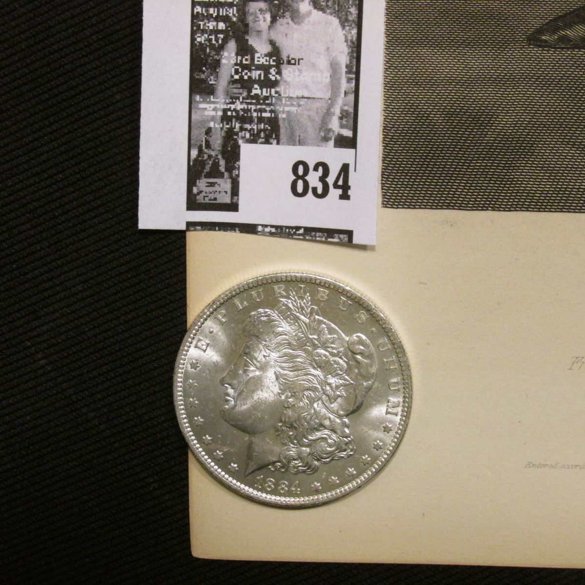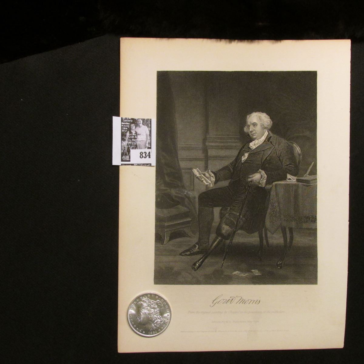 1884 O Morgan Silver Dollar Brilliant Uncirculated; and a black & white print of George Morris?, wit