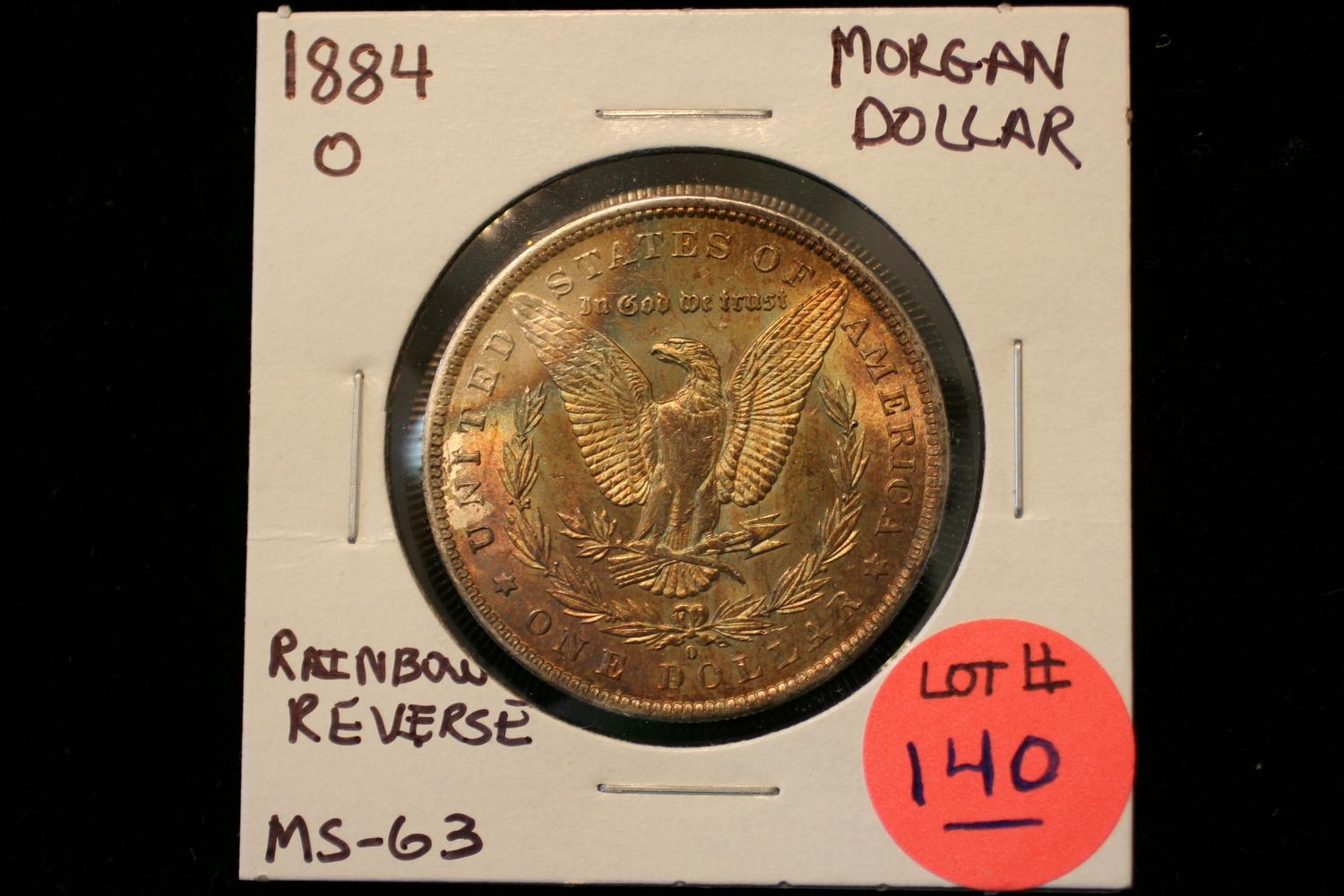 1884-O Morgan Silver Dollar (Colorful Rainbow Reverse) B.U. MS-63