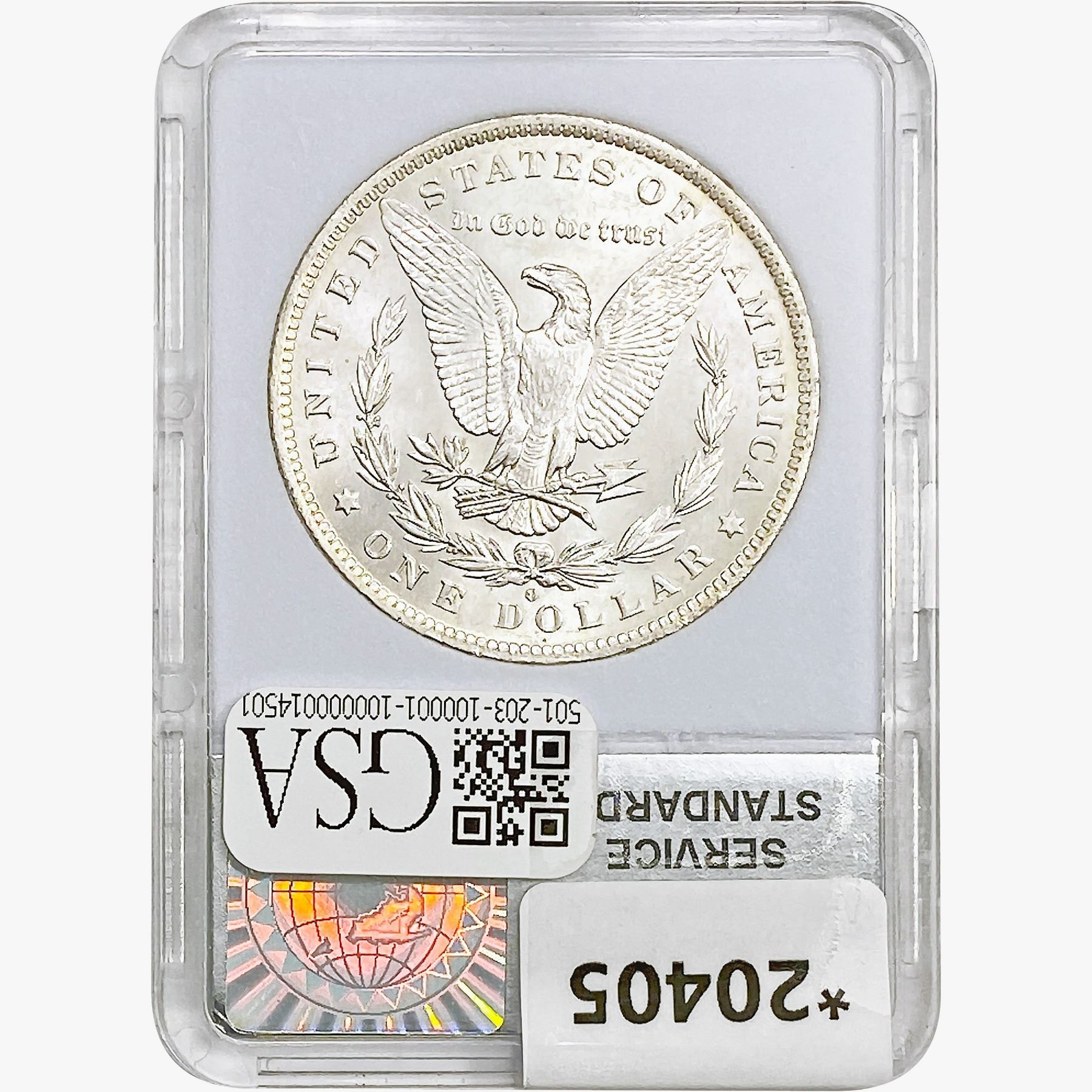 COINS AND CURRENCY LISTED IN GSA'S CATALOG AS GRADED AND ENCAPSULATED BY PCGS, NGC, ANACS, ICG, PCGS CURRENCY, PMG, PCGS BANKNOTE GRADING, CMC OR ANY OTHER THIRD-PARTY GRADING SERVICE ARE LIKEWISE SOLD "AS-IS" EXCEPT AS EXPRESSLY SET FORTH HEREIN. ALL THIRD-PARTY GRADING SERVICE GUARANTEES, INCLUDING AUTHENTICITY, ARE THE SOLE RESPONSIBILITY OF THE THIRD-PARTY GRADING SERVICE AND NOT WARRANTIES OR GUARANTEES OF GSA. BIDDERS SHOULD CONTACT THESE THIRD-PARTY GRADING SERVICES DIRECTLY WITH RESPECT TO ANY CLAIMS OR QUESTIONS THEY MAY HAVE CONCERNING THEIR GUARANTEES AND WARRANTIES. BIDDERS ACKNOWLEDGE AND AGREE THAT AUCTIONEER IS NOT BOUND BY OR LIABLE FOR ANY OPINION OR CERTIFICATION BY ANY THIRD-PARTY GRADING SERVICE. REMOVAL OF A PRODUCT FROM ITS PROTECTIVE CASING OR HOLDER OR ALTERATION OF ANY COIN HOLDER WAIVES ALL RIGHTS CONCERNING THE PRODUCT CONTAINED THEREIN.