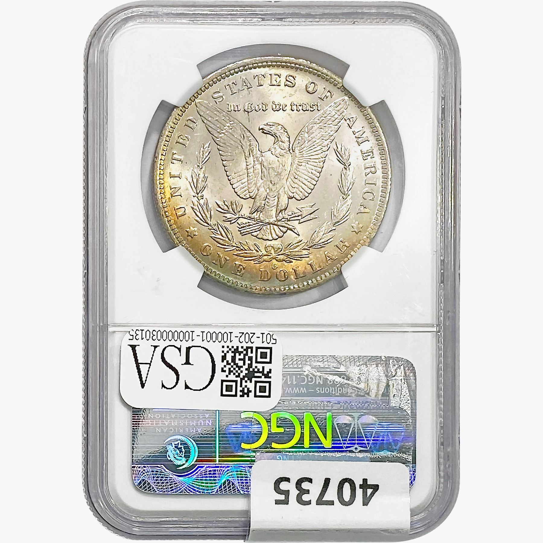 e. Coins sold referencing a third-party grading service are sold “AS IS” without any express or implied warranty, except for a guarantee by GSA that they are genuine. Removal or alteration of the holder, voids all of Bidder’s claims concerning that Product. Certain warranties may be available from the grading services and Bidders are referred to them for further details: Numismatic Guaranty Corporation (NGC), PO Box 4776, Sarasota, FL 34230, www.ngccoin.com/services/writtenguarantee.asp; Professional Coin Grading Services (PCGS), PO Box 9458, Newport Beach, CA 92658, www.pcgs.com/guarantee.html; ANACS, 6555 S. Kenton St., Ste. 303, Englewood, CO 80111; and Independent Coin Grading Co. (ICG), 7901 East Bellview, Ave., Suite 50, Englewood, CO 80111.