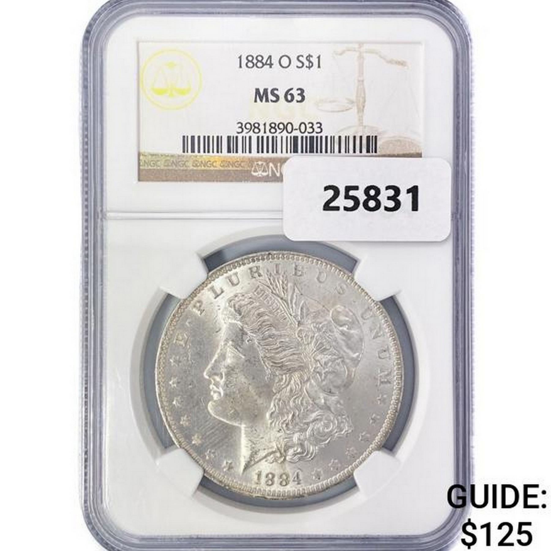 1884-O Morgan Silver Dollar NGC MS63