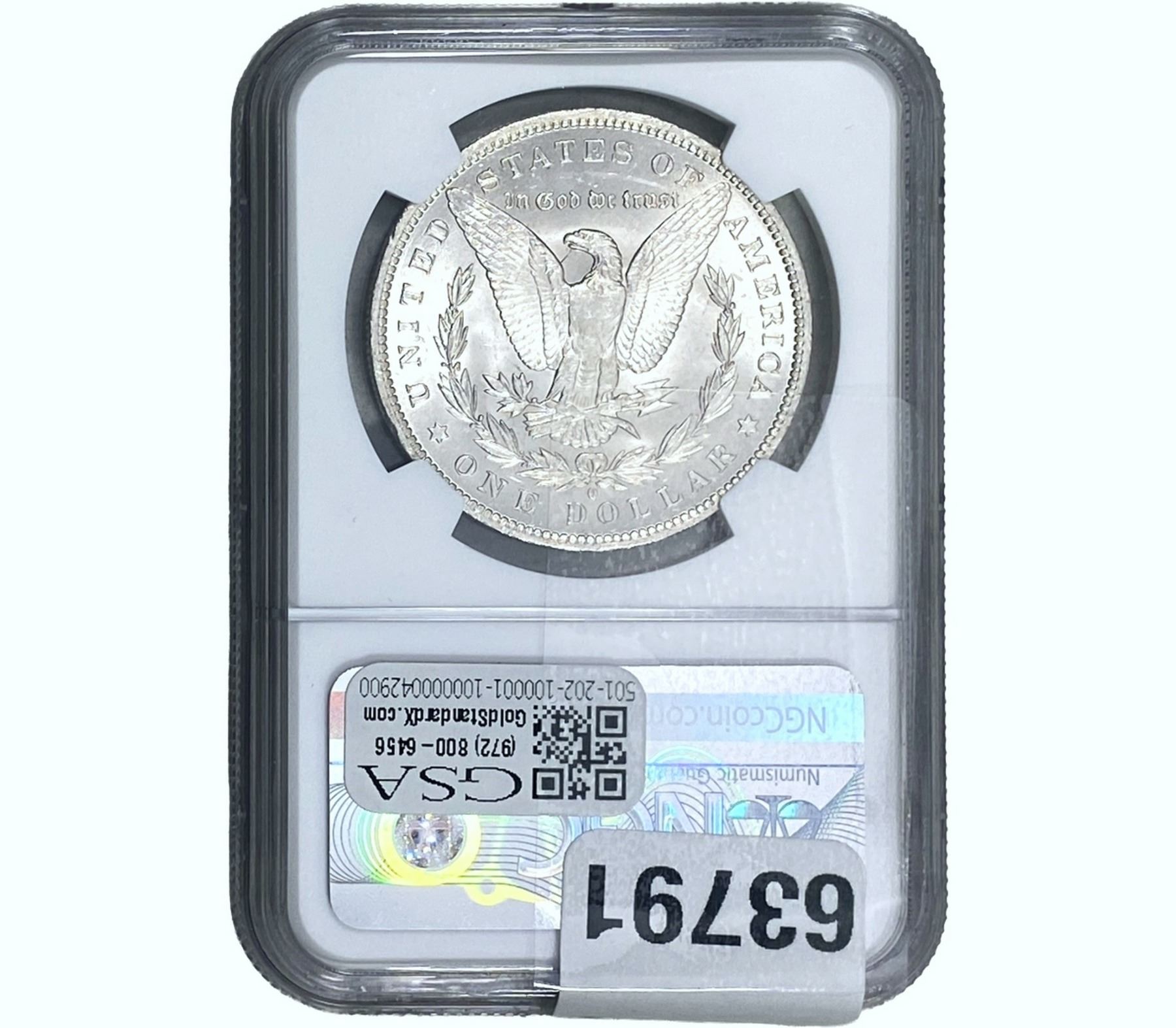 e. Coins sold referencing a third-party grading service are sold “AS IS” without any express or implied warranty, except for a guarantee by GSA that they are genuine. Removal or alteration of the holder, voids all of Bidder’s claims concerning that Product. Certain warranties may be available from the grading services and Bidders are referred to them for further details: Numismatic Guaranty Corporation (NGC), PO Box 4776, Sarasota, FL 34230, www.ngccoin.com/services/writtenguarantee.asp; Professional Coin Grading Services (PCGS), PO Box 9458, Newport Beach, CA 92658, www.pcgs.com/guarantee.html; ANACS, 6555 S. Kenton St., Ste. 303, Englewood, CO 80111; and Independent Coin Grading Co. (ICG), 7901 East Bellview, Ave., Suite 50, Englewood, CO 80111.
