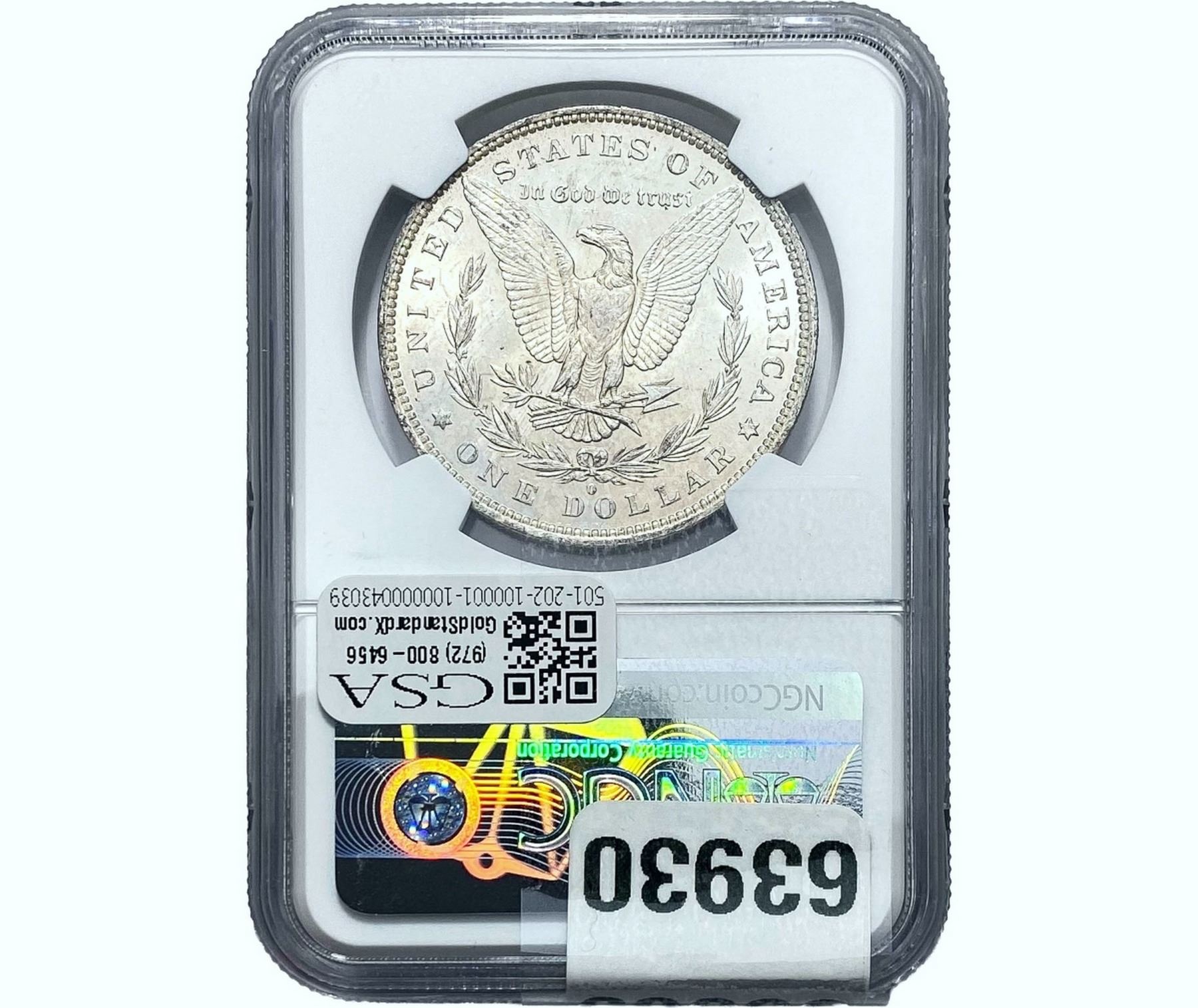 e. Coins sold referencing a third-party grading service are sold “AS IS” without any express or implied warranty, except for a guarantee by GSA that they are genuine. Removal or alteration of the holder, voids all of Bidder’s claims concerning that Product. Certain warranties may be available from the grading services and Bidders are referred to them for further details: Numismatic Guaranty Corporation (NGC), PO Box 4776, Sarasota, FL 34230, www.ngccoin.com/services/writtenguarantee.asp; Professional Coin Grading Services (PCGS), PO Box 9458, Newport Beach, CA 92658, www.pcgs.com/guarantee.html; ANACS, 6555 S. Kenton St., Ste. 303, Englewood, CO 80111; and Independent Coin Grading Co. (ICG), 7901 East Bellview, Ave., Suite 50, Englewood, CO 80111.