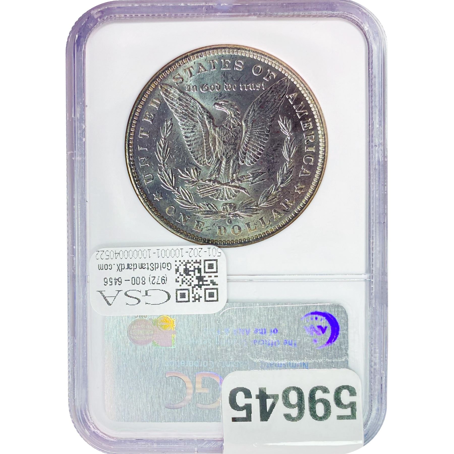e. Coins sold referencing a third-party grading service are sold “AS IS” without any express or implied warranty, except for a guarantee by GSA that they are genuine. Removal or alteration of the holder, voids all of Bidder’s claims concerning that Product. Certain warranties may be available from the grading services and Bidders are referred to them for further details: Numismatic Guaranty Corporation (NGC), PO Box 4776, Sarasota, FL 34230, www.ngccoin.com/services/writtenguarantee.asp; Professional Coin Grading Services (PCGS), PO Box 9458, Newport Beach, CA 92658, www.pcgs.com/guarantee.html; ANACS, 6555 S. Kenton St., Ste. 303, Englewood, CO 80111; and Independent Coin Grading Co. (ICG), 7901 East Bellview, Ave., Suite 50, Englewood, CO 80111.