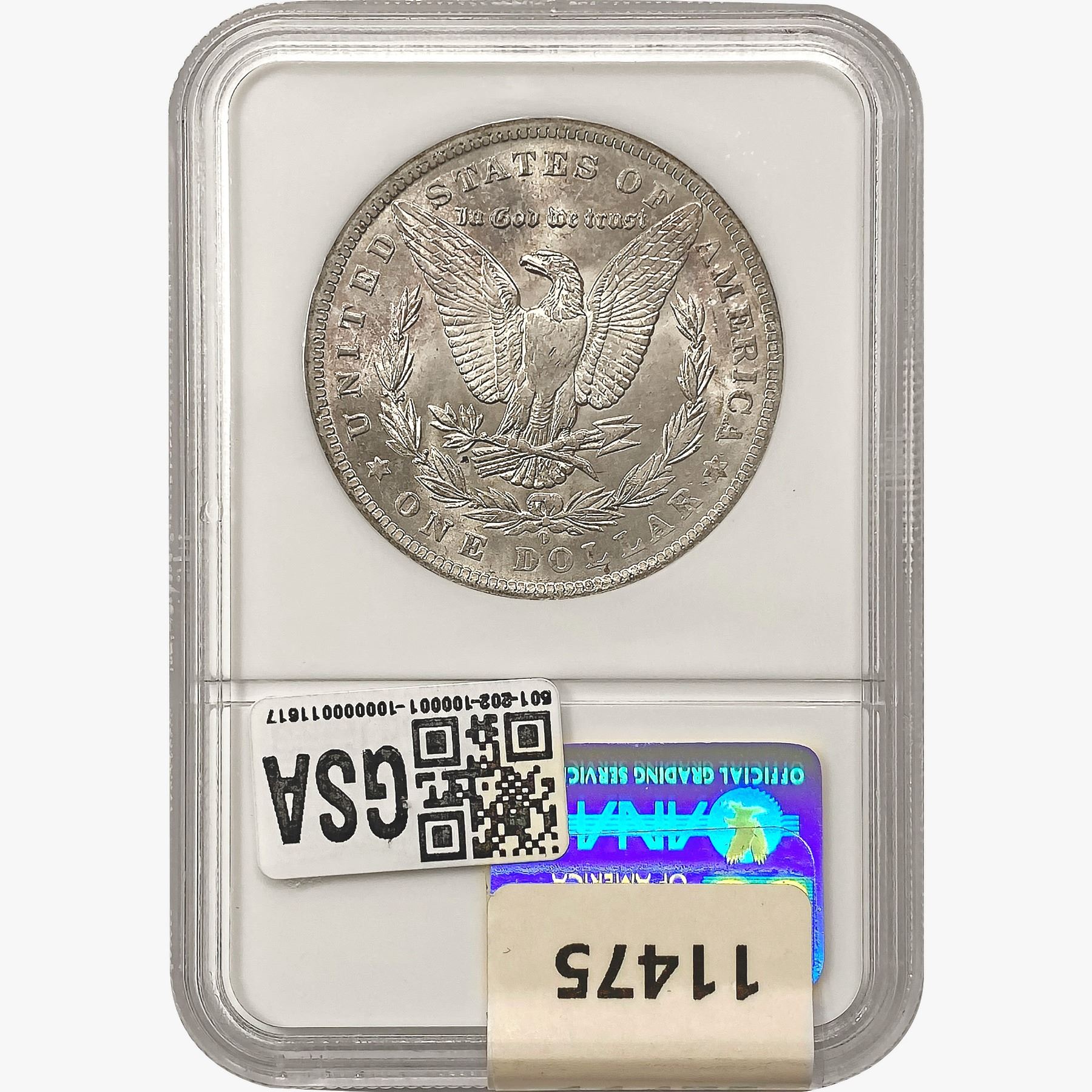 COINS AND CURRENCY LISTED IN GSA’S CATALOG AS GRADED AND ENCAPSULATED BY PCGS, NGC, ANACS, ICG, PCGS CURRENCY, PMG, PCGS BANKNOTE GRADING, CMC OR ANY OTHER THIRD-PARTY GRADING SERVICE ARE LIKEWISE SOLD “AS-IS” EXCEPT AS EXPRESSLY SET FORTH HEREIN. ALL THIRD-PARTY GRADING SERVICE GUARANTEES, INCLUDING AUTHENTICITY, ARE THE SOLE RESPONSIBILITY OF THE THIRD-PARTY GRADING SERVICE AND NOT WARRANTIES OR GUARANTEES OF GSA. BIDDERS SHOULD CONTACT THESE THIRD-PARTY GRADING SERVICES DIRECTLY WITH RESPECT TO ANY CLAIMS OR QUESTIONS THEY MAY HAVE CONCERNING THEIR GUARANTEES AND WARRANTIES. BIDDERS ACKNOWLEDGE AND AGREE THAT AUCTIONEER IS NOT BOUND BY OR LIABLE FOR ANY OPINION OR CERTIFICATION BY ANY THIRD-PARTY GRADING SERVICE. REMOVAL OF A PRODUCT FROM ITS PROTECTIVE CASING OR HOLDER OR ALTERATION OF ANY COIN HOLDER WAIVES ALL RIGHTS CONCERNING THE PRODUCT CONTAINED THEREIN.