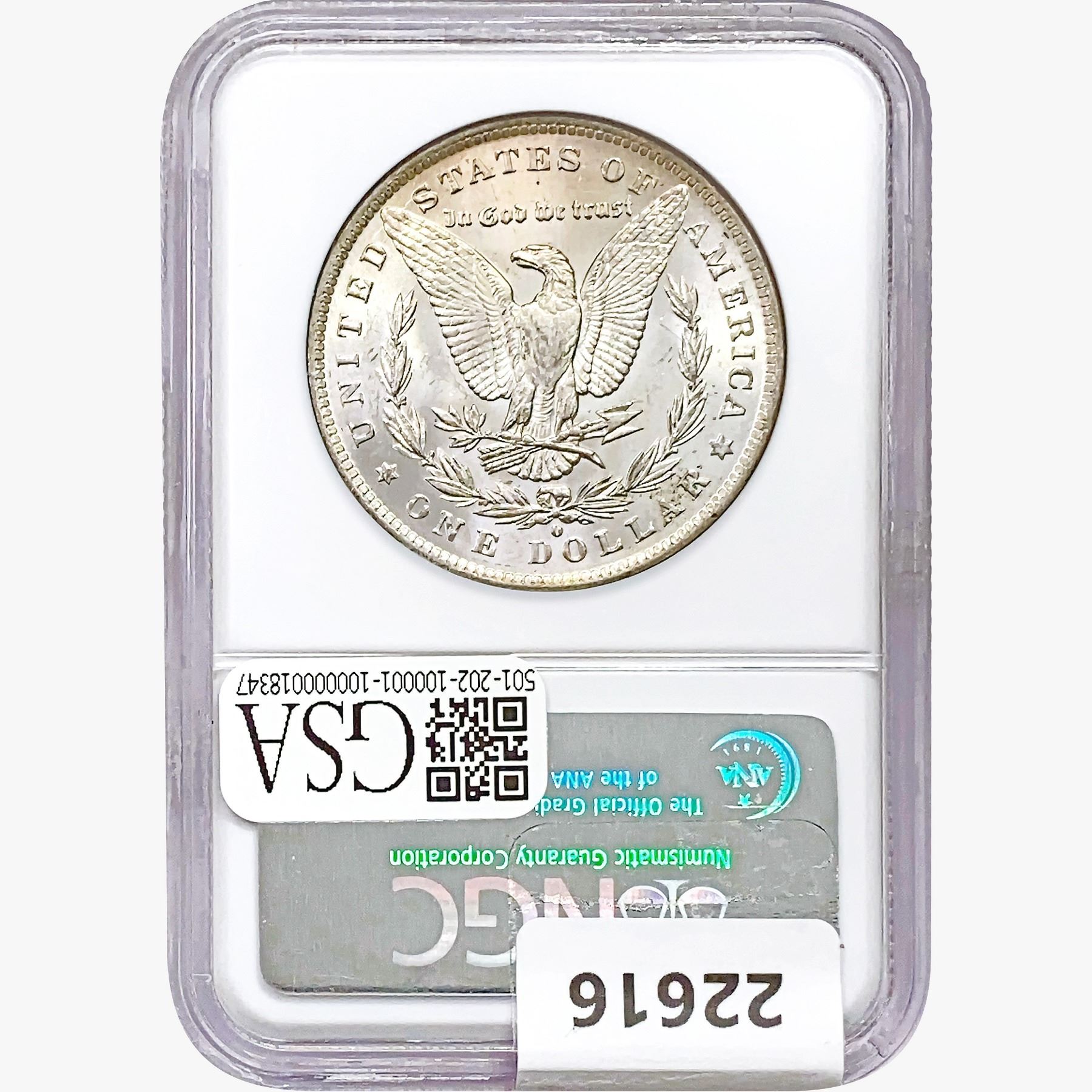 COINS AND CURRENCY LISTED IN GSA’S CATALOG AS GRADED AND ENCAPSULATED BY PCGS, NGC, ANACS, ICG, PCGS CURRENCY, PMG, PCGS BANKNOTE GRADING, CMC OR ANY OTHER THIRD-PARTY GRADING SERVICE ARE LIKEWISE SOLD “AS-IS” EXCEPT AS EXPRESSLY SET FORTH HEREIN. ALL THIRD-PARTY GRADING SERVICE GUARANTEES, INCLUDING AUTHENTICITY, ARE THE SOLE RESPONSIBILITY OF THE THIRD-PARTY GRADING SERVICE AND NOT WARRANTIES OR GUARANTEES OF GSA. BIDDERS SHOULD CONTACT THESE THIRD-PARTY GRADING SERVICES DIRECTLY WITH RESPECT TO ANY CLAIMS OR QUESTIONS THEY MAY HAVE CONCERNING THEIR GUARANTEES AND WARRANTIES. BIDDERS ACKNOWLEDGE AND AGREE THAT AUCTIONEER IS NOT BOUND BY OR LIABLE FOR ANY OPINION OR CERTIFICATION BY ANY THIRD-PARTY GRADING SERVICE. REMOVAL OF A PRODUCT FROM ITS PROTECTIVE CASING OR HOLDER OR ALTERATION OF ANY COIN HOLDER WAIVES ALL RIGHTS CONCERNING THE PRODUCT CONTAINED THEREIN.