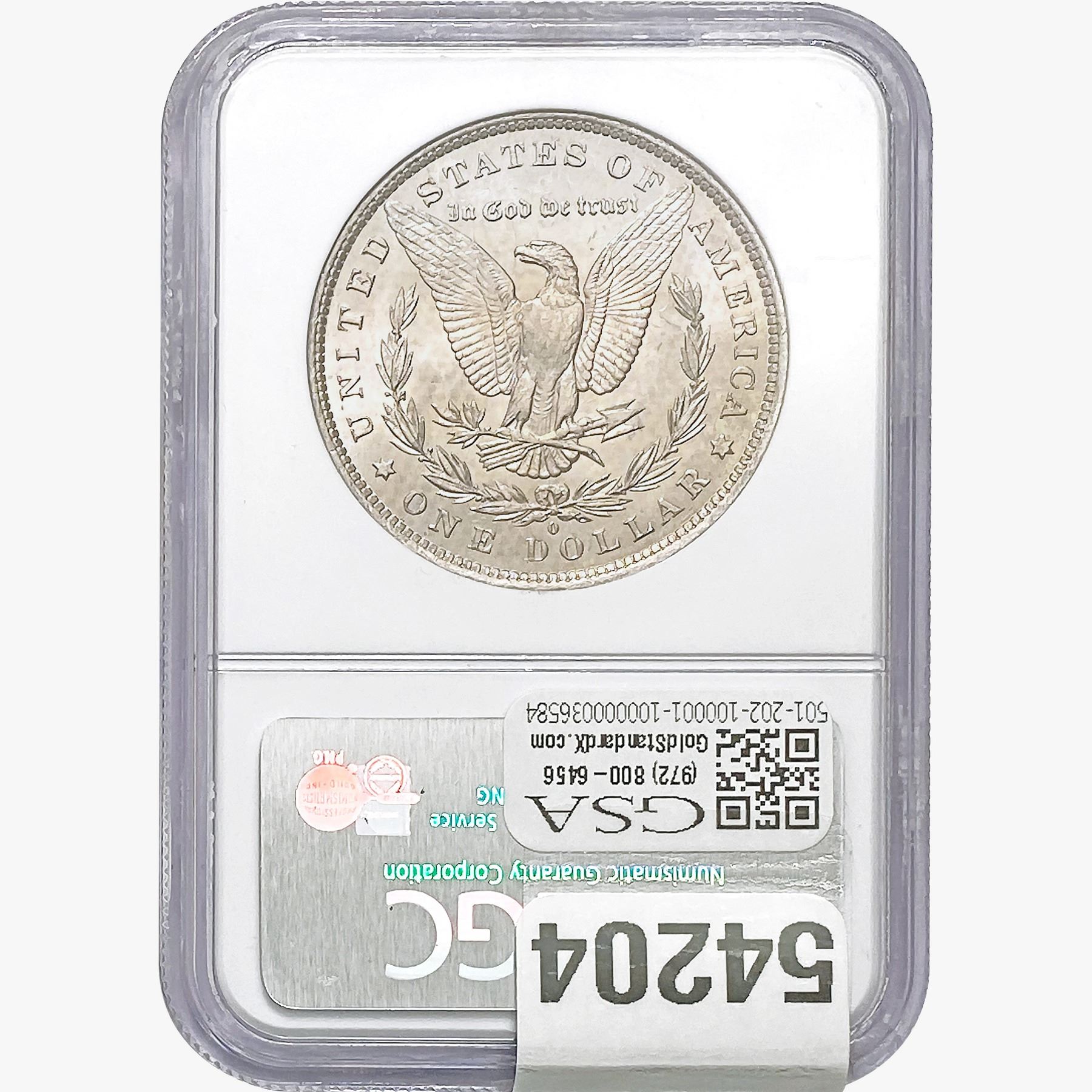 e. Coins sold referencing a third-party grading service are sold “AS IS” without any express or implied warranty, except for a guarantee by GSA that they are genuine. Removal or alteration of the holder, voids all of Bidder’s claims concerning that Product. Certain warranties may be available from the grading services and Bidders are referred to them for further details: Numismatic Guaranty Corporation (NGC), PO Box 4776, Sarasota, FL 34230, www.ngccoin.com/services/writtenguarantee.asp; Professional Coin Grading Services (PCGS), PO Box 9458, Newport Beach, CA 92658, www.pcgs.com/guarantee.html; ANACS, 6555 S. Kenton St., Ste. 303, Englewood, CO 80111; and Independent Coin Grading Co. (ICG), 7901 East Bellview, Ave., Suite 50, Englewood, CO 80111.