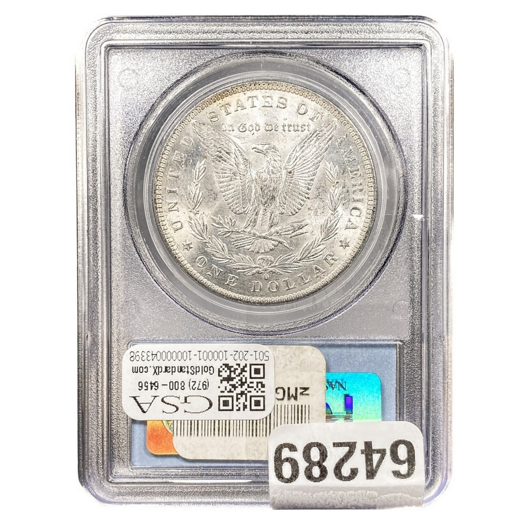 e. Coins sold referencing a third-party grading service are sold “AS IS” without any express or implied warranty, except for a guarantee by GSA that they are genuine. Removal or alteration of the holder, voids all of Bidder’s claims concerning that Product. Certain warranties may be available from the grading services and Bidders are referred to them for further details: Numismatic Guaranty Corporation (NGC), PO Box 4776, Sarasota, FL 34230, www.ngccoin.com/services/writtenguarantee.asp; Professional Coin Grading Services (PCGS), PO Box 9458, Newport Beach, CA 92658, www.pcgs.com/guarantee.html; ANACS, 6555 S. Kenton St., Ste. 303, Englewood, CO 80111; and Independent Coin Grading Co. (ICG), 7901 East Bellview, Ave., Suite 50, Englewood, CO 80111.