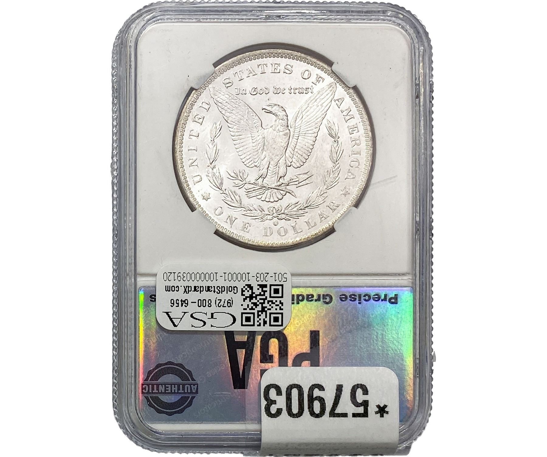 e. Coins sold referencing a third-party grading service are sold “AS IS” without any express or implied warranty, except for a guarantee by GSA that they are genuine. Removal or alteration of the holder, voids all of Bidder’s claims concerning that Product. Certain warranties may be available from the grading services and Bidders are referred to them for further details: Numismatic Guaranty Corporation (NGC), PO Box 4776, Sarasota, FL 34230, www.ngccoin.com/services/writtenguarantee.asp; Professional Coin Grading Services (PCGS), PO Box 9458, Newport Beach, CA 92658, www.pcgs.com/guarantee.html; ANACS, 6555 S. Kenton St., Ste. 303, Englewood, CO 80111; and Independent Coin Grading Co. (ICG), 7901 East Bellview, Ave., Suite 50, Englewood, CO 80111.