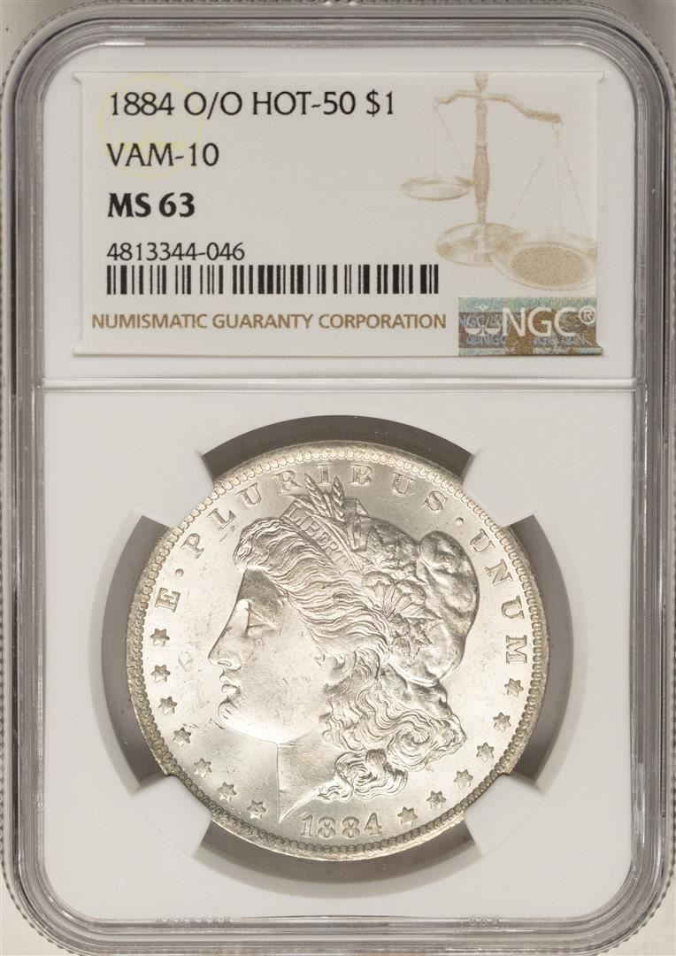 One 1884-O/O VAM-10 $1 Morgan Silver Dollar Coin NGC MS63 Hot 50. NGC Certified.