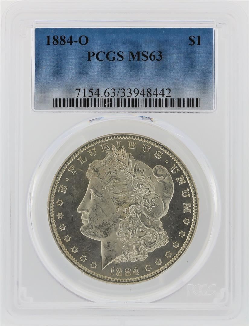 One 1884-O PCGS MS63 Morgan Silver Dollar. PCGS Certified.