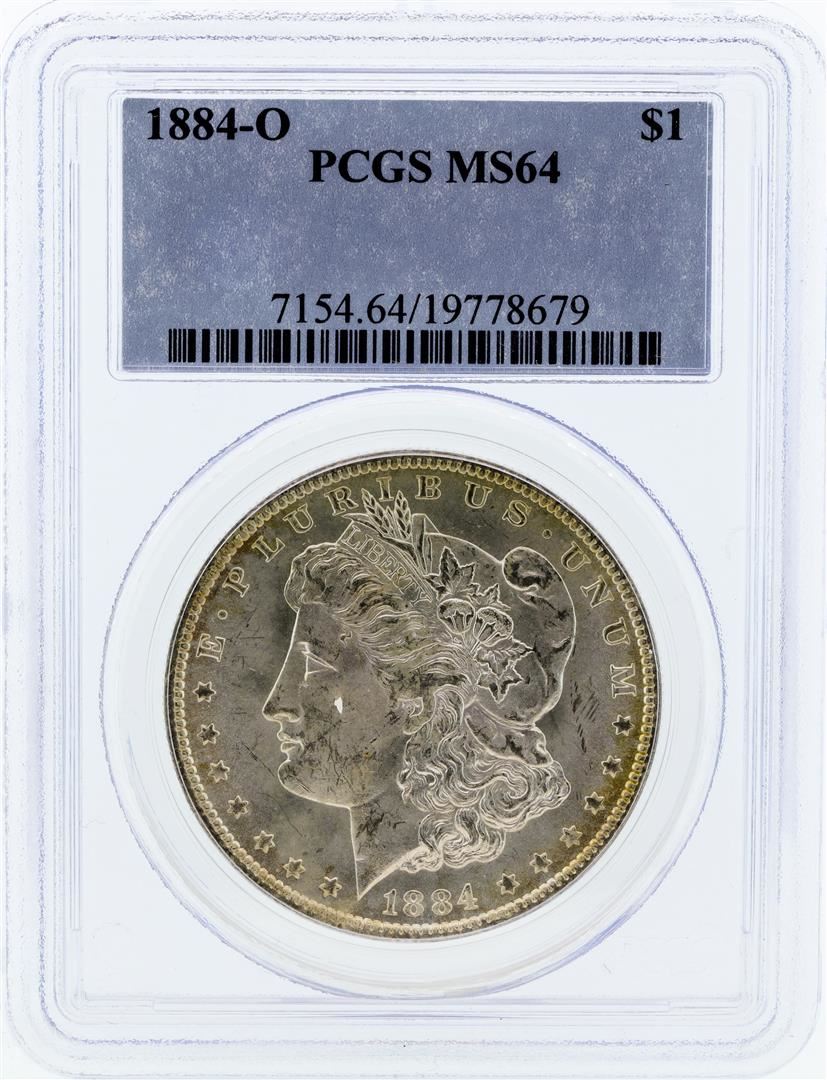 One 1884-O PCGS MS64 Morgan Silver Dollar.