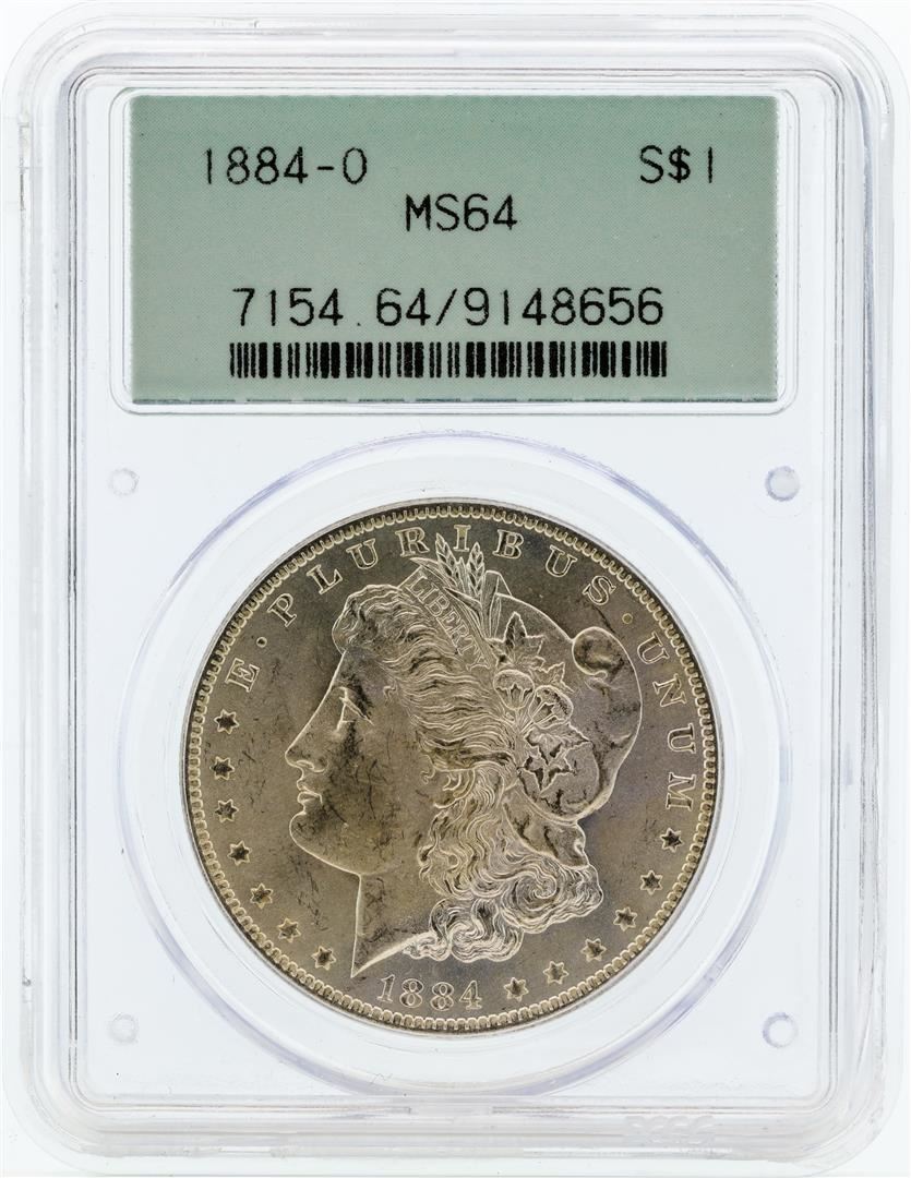 One 1884-O PCGS MS64 Morgan Silver Dollar.