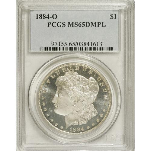 <B>1884-O S$1 MS65 Deep Mirror Prooflike PCGS.</B></I> One of the few readily available Deep Mirror Prooflike dollars and also one of the best produced. This is a fully brilliant coin that has heavily frosted devices and fields that are illimitable in their mirrored reflectivity. A fully struck coin also. Just wonderful for type.<BR><BR><b>Shipping:</b> Coins & Currency (<a target="_blank" href="http://www.heritageauctions.com/common/shipping.php">view shipping information</a>)