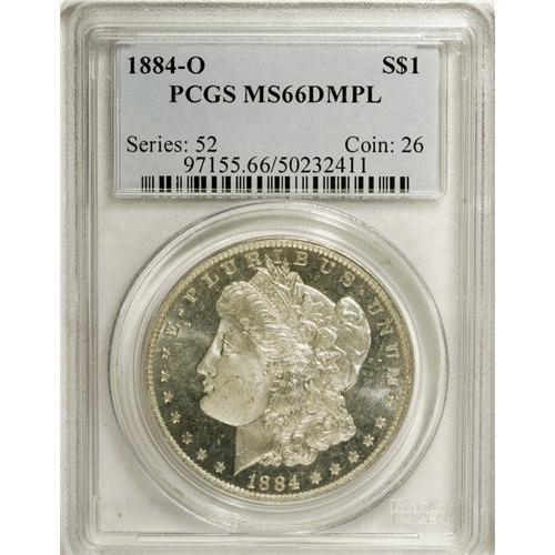 <B>1884-O S$1 MS66 Deep Mirror Prooflike PCGS.</B></I> A glittering Premium Gem with glassy, mirrored fields that are starkly offset by chalky-white design elements. Very well struck for this heavily produced New Orleans issue, lacking only a couple of curls over Liberty's ear. Population: 49 in 66, 1 finer (12/06).<BR><BR><b>Shipping:</b> Coin/Currency (<a target="_blank" href="http://www.heritageauctions.com/common/shipping.php">view shipping information</a>)