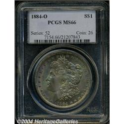 <B>1884-O<S$1> MS66 PCGS.</B></I> Ruby-red and mint-green colors compete for territory on the obverse of this lustrous and beautifully preserved Gem. The reverse is fully brilliant. The strike is good although not needle-sharp, and a few localized marks are seen on the reverse under close examination.<BR><I>From the JFS Collection.</B></I> <BR><BR><B>Important notice:</B> Heritage usually auctions material at the rate of 200-250 lots per hour. On some occasions eBay Live bid software or the Internet may not be able to keep up with the pace of the auction. We recommend placing a realistic absentee bid now as insurance to avoid disappointment. Occasionally the auctioneer may eliminate or reject an eBay Live bid, and the auctioneer may also reopen a lot after the close of the eBay live bidding (usually because we missed an audience bid), and may reject your bid even if it shows you as the winning bidder. By bidding via eBay Live, you agree that Heritage may award the lot to another bidder at its sole discretion under the circumstances described above or any other reasonable circumstances. Since eBay bids are not shown to us until we open the lot on the floor, we treat those bids just like floor bids. In most cases the floor responds before the eBay bid is presented to us, due to Internet lag time, so for consistency we have made it a policy that floor bids are always considered first over tie eBay live bids. Also please note that all Heritage lots purchased through eBay Live carry a 20% Buyer's Premium. Please make sure you read the Terms and Conditions before you bid. </span></font></tr></table></td></tr></table>