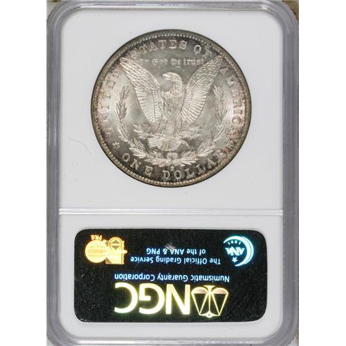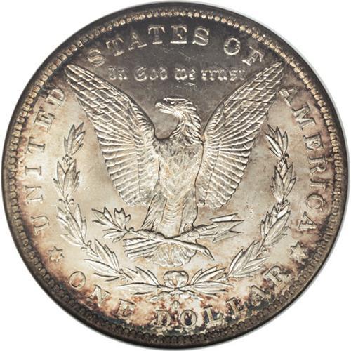 <B>1884-O S$1 MS67 NGC.</B></I> The 1884-O, with a mintage of 9,730,000 pieces, is easily available in Mint State grades through MS65, is just slightly tougher in MS66, and considerably more difficult in MS67. Splotches of cobalt-blue, lavender, and golden-tan gravitate to the borders of this radiantly lustrous Superb Gem. Generally well struck, with partial definition in the hair over Liberty's ear. A couple of small reverse marks do not disturb. Census: 71 in 67, 0 finer (3/07).<BR><BR><b>Shipping:</b> Coins & Currency (<a target="_blank" href="http://www.heritageauctions.com/common/shipping.php">view shipping information</a>)