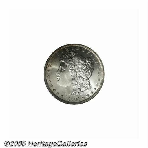 <B>1884-O<S$1> MS67 NGC.</B></I> Unusually sharp for the issue with frosty silver luster and only the faintest traces of toning confined to the rims. This is an extremely common date, except in Superb Gem quality. The population data clearly indicates the elusive nature of examples in this lofty grade. Population: 41 in 67, 0 finer (6/05).