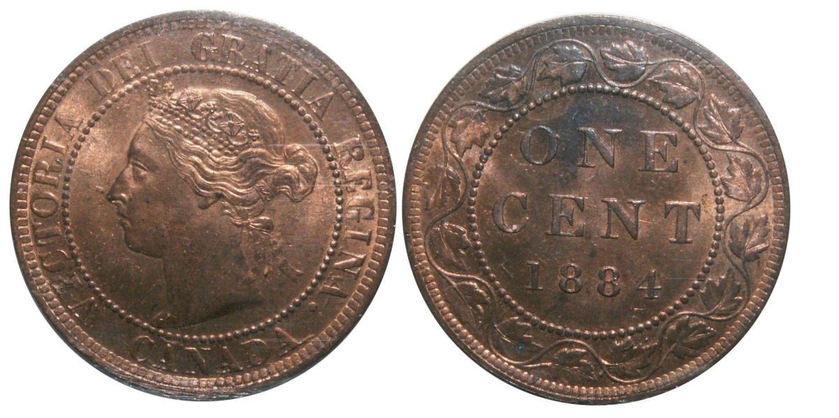 1884 Obv.2 1¢ ICCS MS65 Red. A very flashy coin! Excellent strike and clean fields. Top 3 in census.