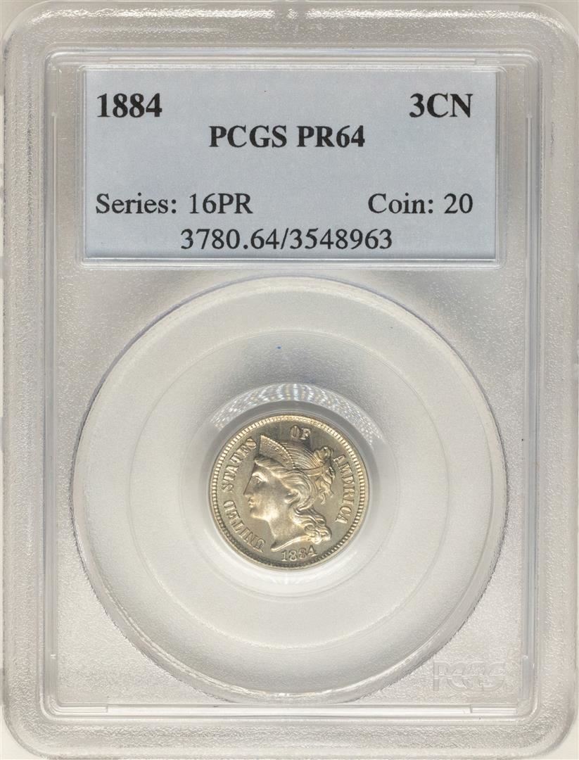 One 1884 Proof Three Cent Nickel Coin PCGS PR64. PCGS Graded.