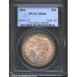 1884 S$1 MS66 PCGS. The golden-brown and rose-violet patina is gorgeous. Lustrous and well struck wi