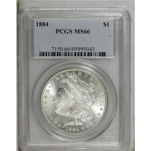 <B>1884 S$1 MS66 PCGS.</B></I> This assertively struck Premium Gem has a clean cheek and beautifully smooth fields. Brilliant save for an ebony speck on the N in UNITED. Remarkable quality for this familiar Philadelphia Mint issue.<BR><BR><b>Shipping:</b> Coin/Currency (<a target="_blank" href="http://www.heritageauctions.com/common/shipping.php">view shipping information</a>)