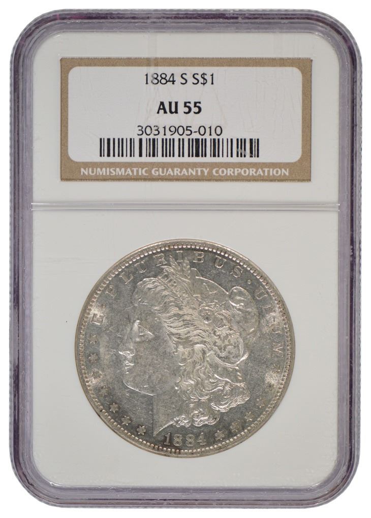 One 1884-S $1 Morgan Silver Dollar Coin NGC AU55.
