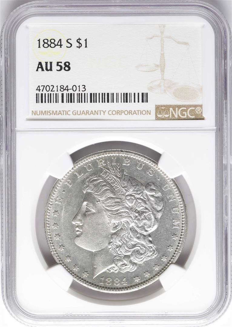 One 1884-S $1 Morgan Silver Dollar Coin NGC AU58. NGC Certified.
