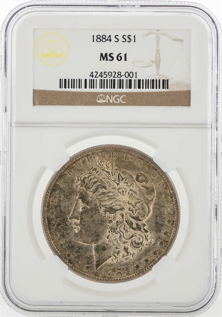 One 1884-S $1 Morgan Silver Dollar Coin NGC MS61. 1884-S an extremely rare date in uncirculated seldom seen. NGC Certified.