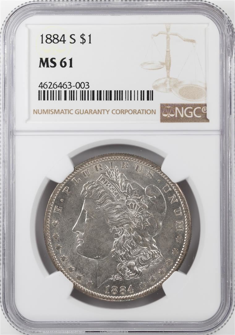 One 1884-S $1 Morgan Silver Dollar Coin NGC MS61. NGC Certified.