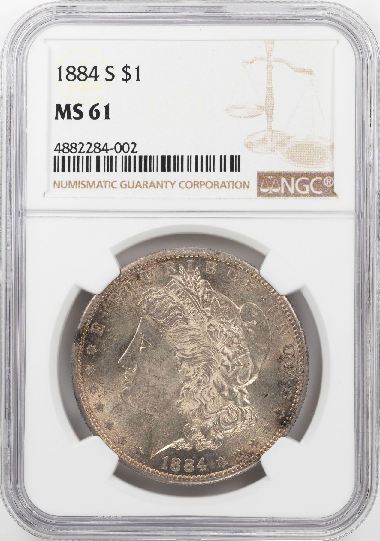 One 1884-S $1 Morgan Silver Dollar Coin NGC MS61.
