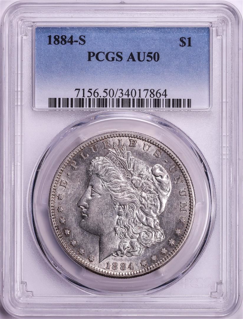 One 1884-S $1 Morgan Silver Dollar Coin PCGS AU50. PCGS Graded.