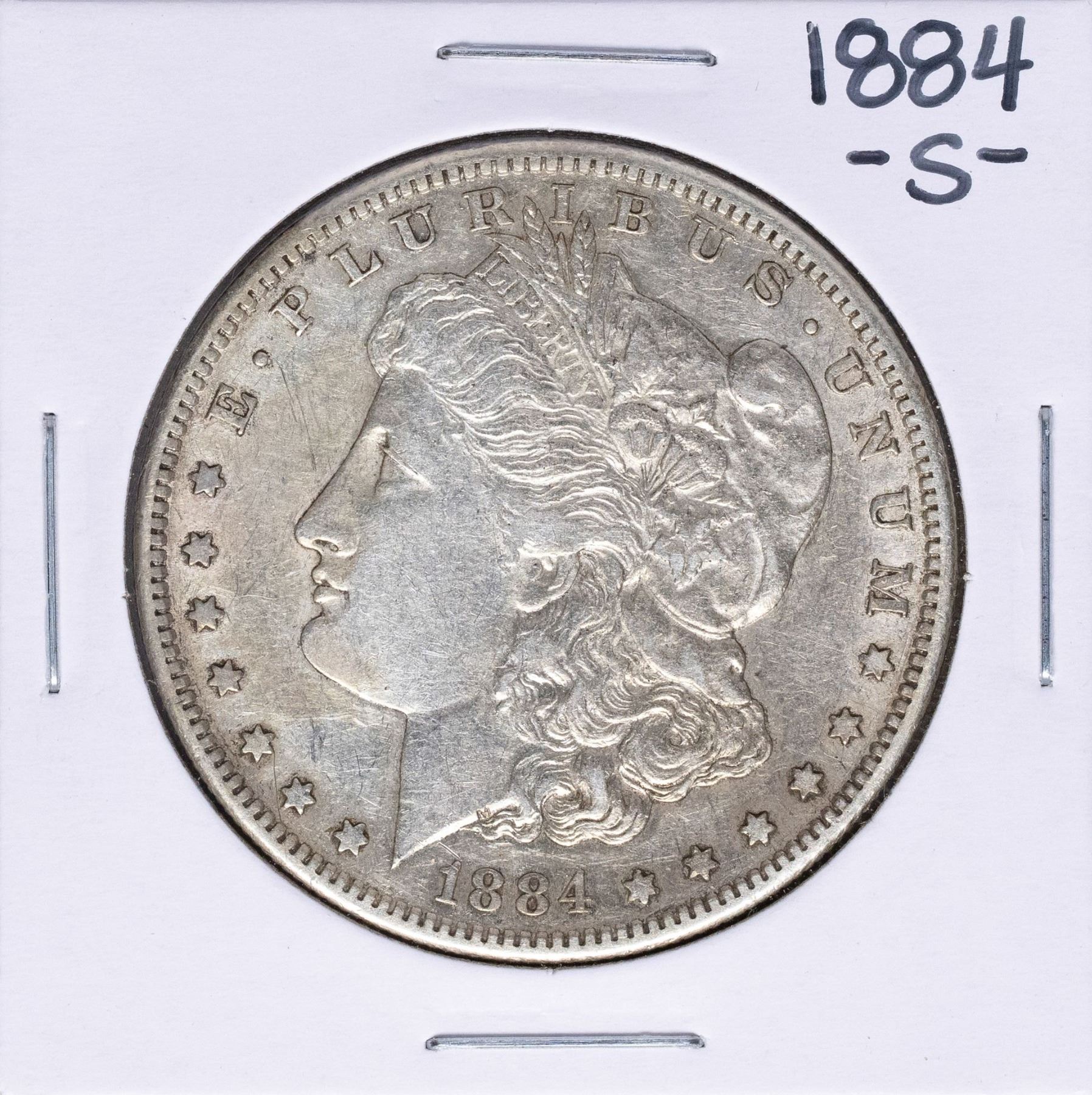One 1884-S $1 Morgan Silver Dollar Coin.