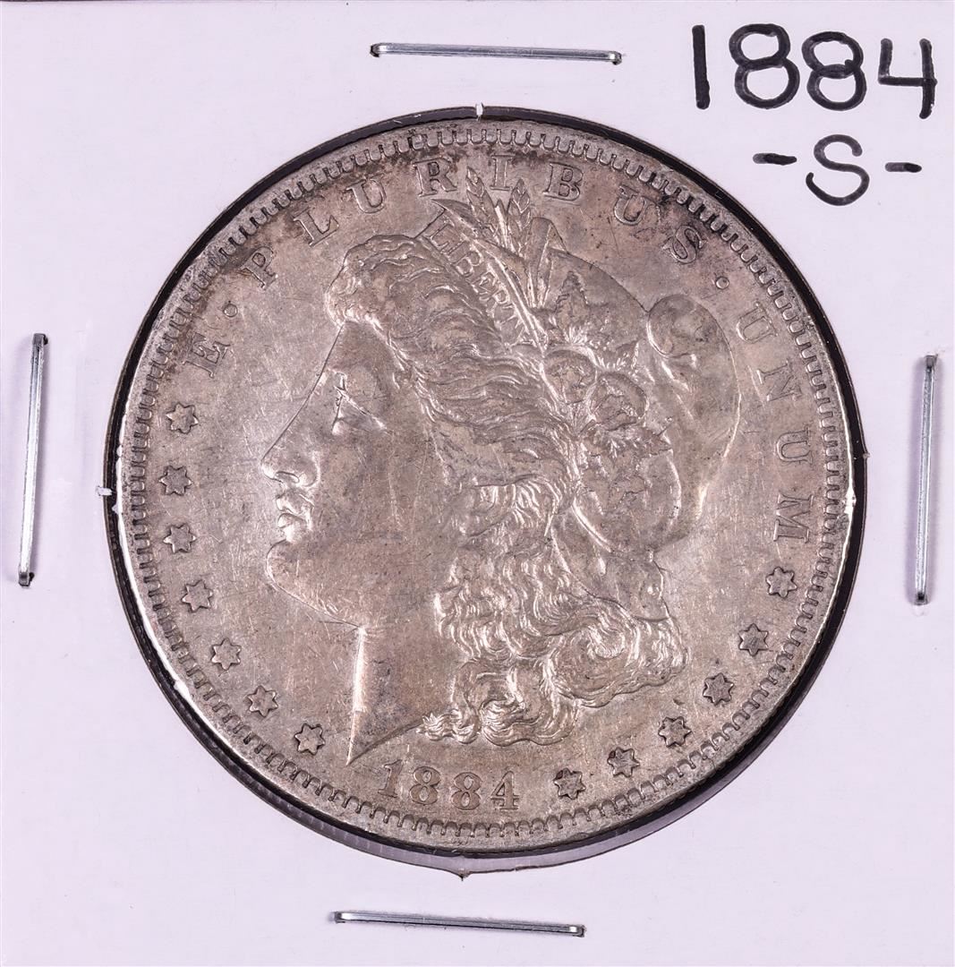 One 1884-S $1 Morgan Silver Dollar Coin.