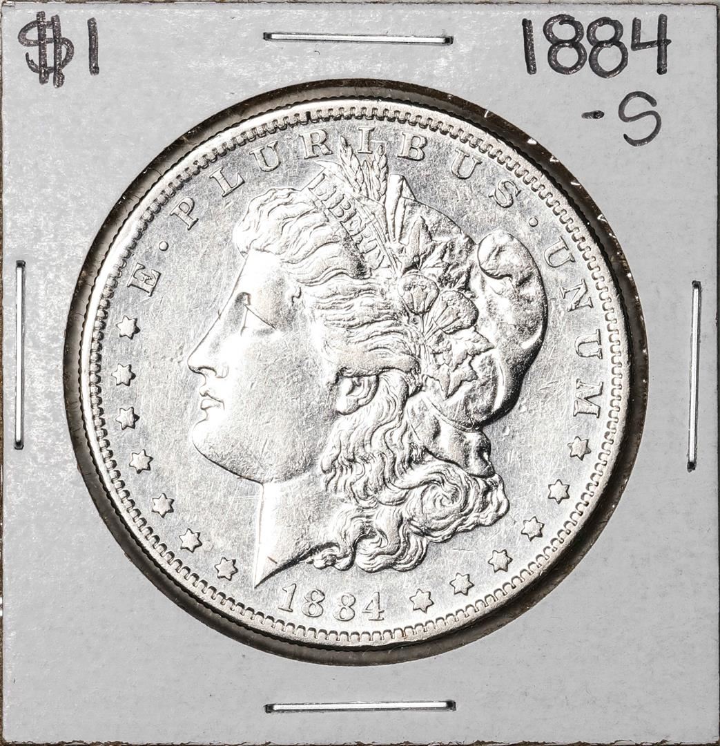 One 1884-S $1 Morgan Silver Dollar Coin.