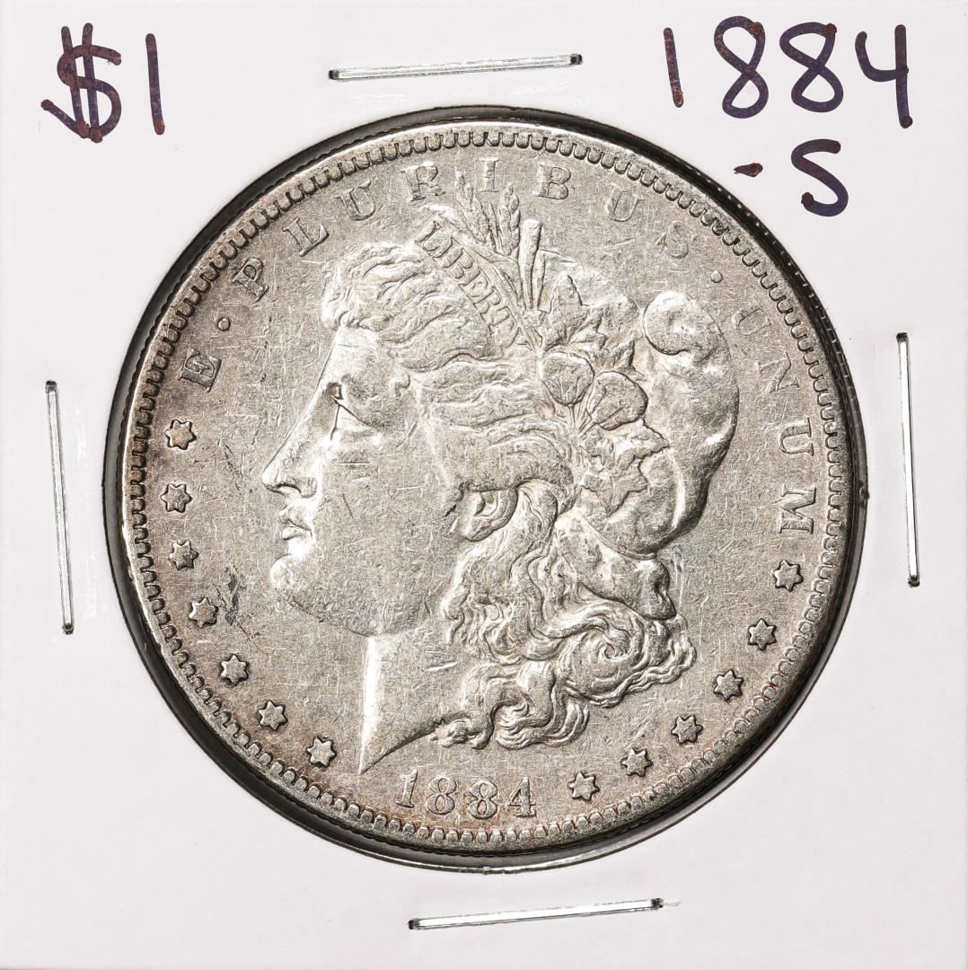 One 1884-S $1 Morgan Silver Dollar Coin.