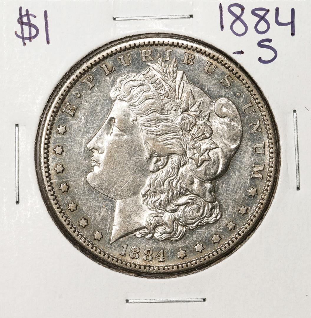 One 1884-S $1 Morgan Silver Dollar Coin.