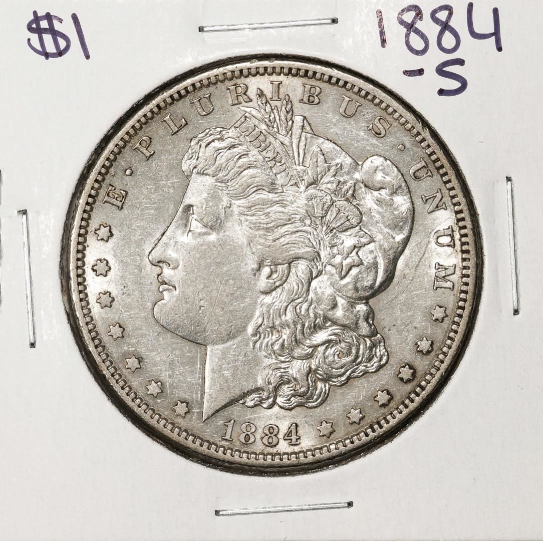 One 1884-S $1 Morgan Silver Dollar Coin.