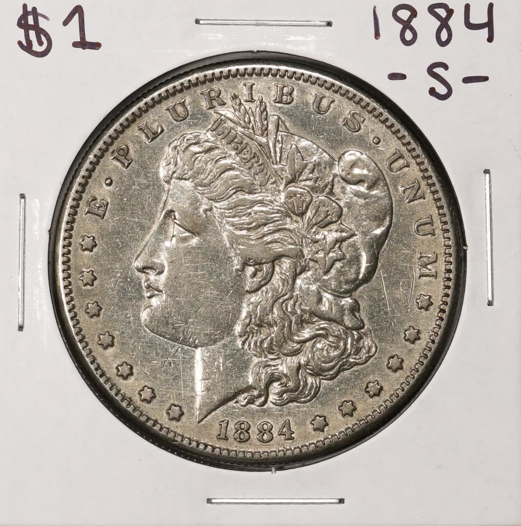 One 1884-S $1 Morgan Silver Dollar Coin.