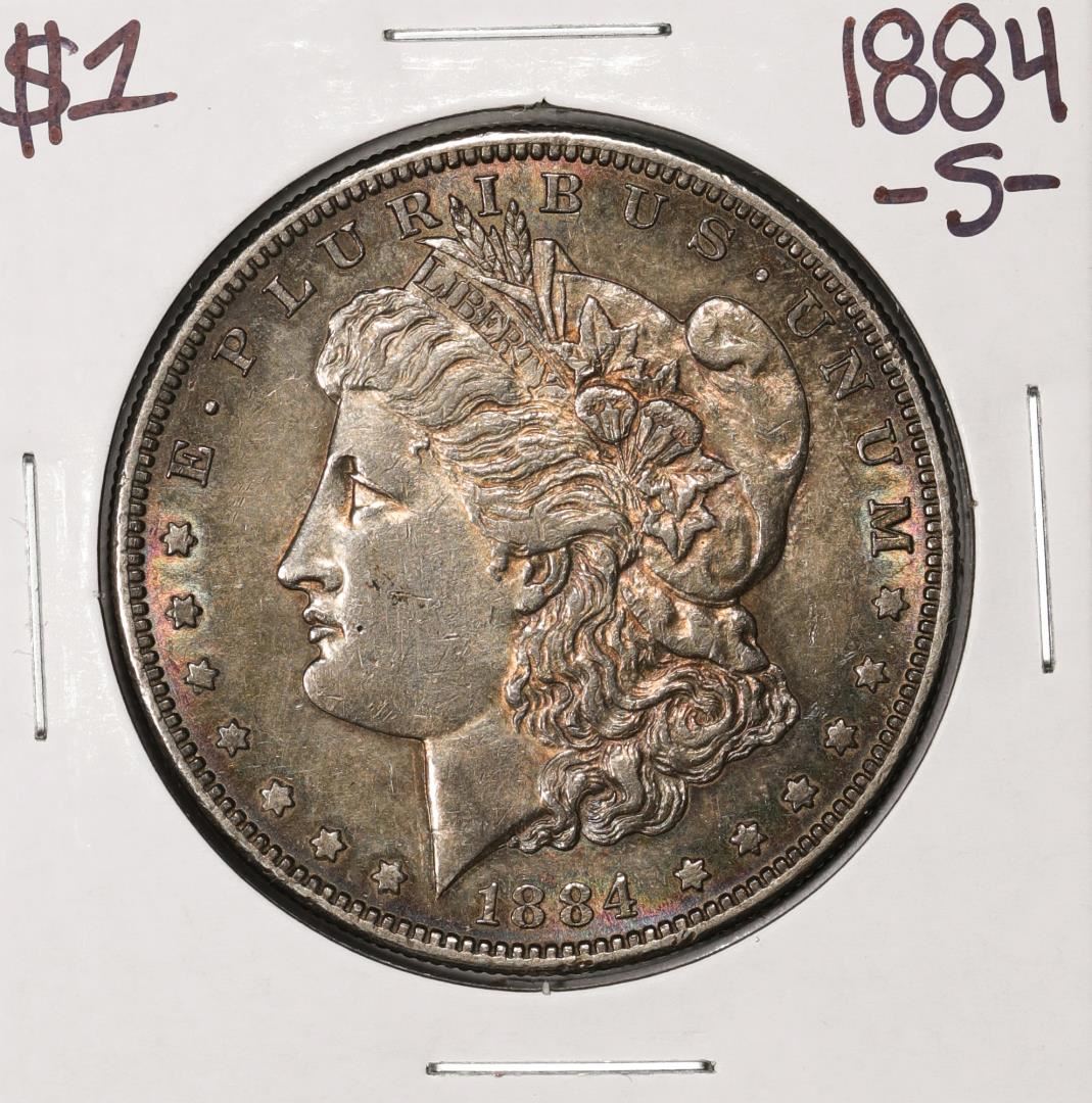 One 1884-S $1 Morgan Silver Dollar Coin.