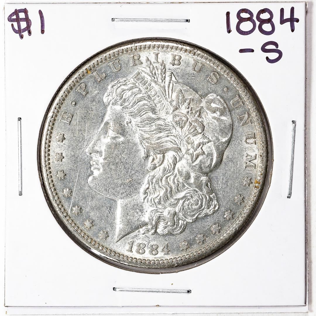 One 1884-S $1 Morgan Silver Dollar Coin.