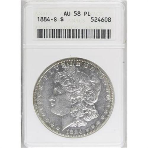 <B>1884-S $1 AU58 Prooflike ANACS.</B></I> VAM-3. NGC Census: (15/10). PCGS Population (0/3). Numismedia Wsl. Price for NGC/PCGS coin in AU58: $1,750. (#7157)<BR><I>From The Diamond Head Collection.</B></I><BR><BR><B>Coin Engraver:</B> George T. Morgan<BR><BR><b>Shipping:</b> Coins & Currency (<a target="_blank" href="http://www.heritageauctions.com/common/shipping.php">view shipping information</a>\)
