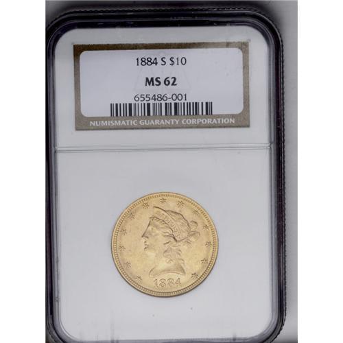 1884-S $10 MS62 NGC. This crisply struck and lustrous 1884-S[$10] MS62 NGC.