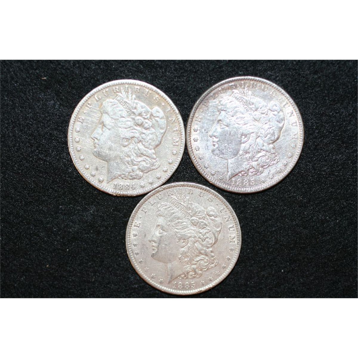 1884-S & 1885 & 1885-O Silver Morgan $1, lot of 3