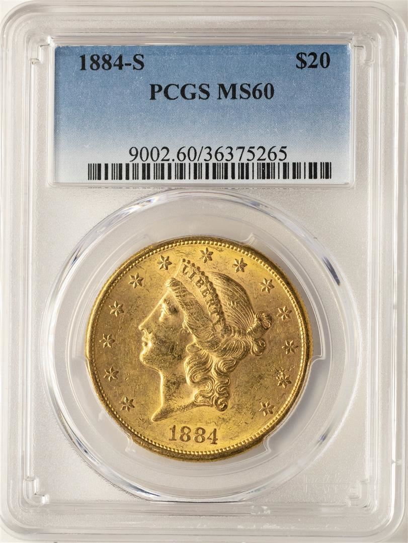One 1884-S $20 Liberty Head Double Eagle Gold Coin NGC MS60. NGC Certified.