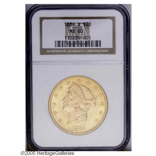 1884-S $20 MS60 NGC. Both sides are peppered with nume 1884-S[$20] MS60 NGC.