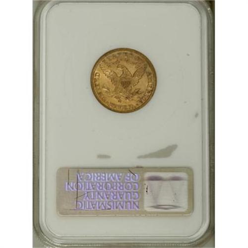 <B>1884-S $5 AU58 NGC.</B></I> NGC Census: (77/239). PCGS Population (31/147). Mintage: 177,000. Numismedia Wsl. Price for NGC/PCGS coin in AU58: $242. (#8366)<BR><BR><b>Shipping:</b> Coins & Currency (<a target="_blank" href="http://www.heritageauctions.com/common/shipping.php">view shipping information</a>)